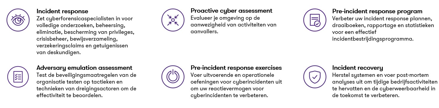 Effectieve risicobeperking begint met voorbereiding en oefening. Organisaties moeten een gestructureerd incidentresponsprotocol volgen om de juridische risico's, kosten en doorlopende risico's van een cyberincident te minimaliseren. Wanneer systemen zijn blootgesteld, moet er snel actie worden ondernomen voor indamming, uitroeiing, herstel en het aanpakken van juridische en regelgevingskwesties. De cyberteams van Grant Thornton bieden ervaren begeleiding bij deze complexiteit.