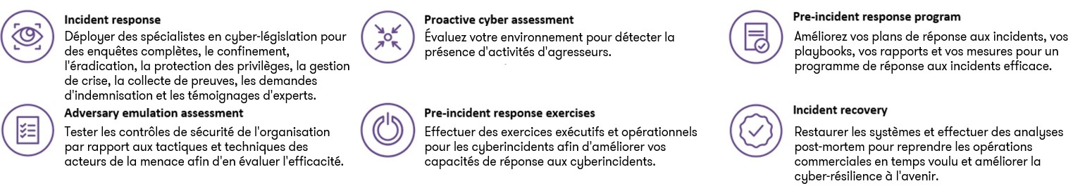 Une limitation efficace des risques débute par la préparation et l’entraînement. Les organisations doivent suivre un protocole structuré de réponse aux incidents afin de minimiser les risques juridiques, les coûts et les risques permanents d’un cyberincident. Quand les systèmes sont exposés, il est essentiel d’agir rapidement pour contenir et éradiquer la menace, restaurer les systèmes et traiter les questions juridiques et réglementaires. Les cyberéquipes de Grant Thornton proposent un accompagnement professionnel pour vous guider dans ces matières complexes.